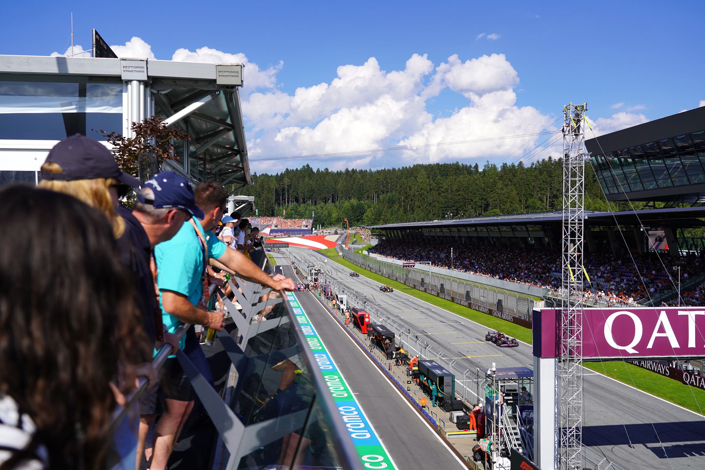 Covered venue with an outdoor viewing balcony located at the end of the Pit Building, above the F1® Team Garages. You will enjoy panoramic views overlooking the Main Straight including the Starting Grid, Finish Line and through to Turn 1 plus, over the Paddock to distant parts of the F1® circuit.